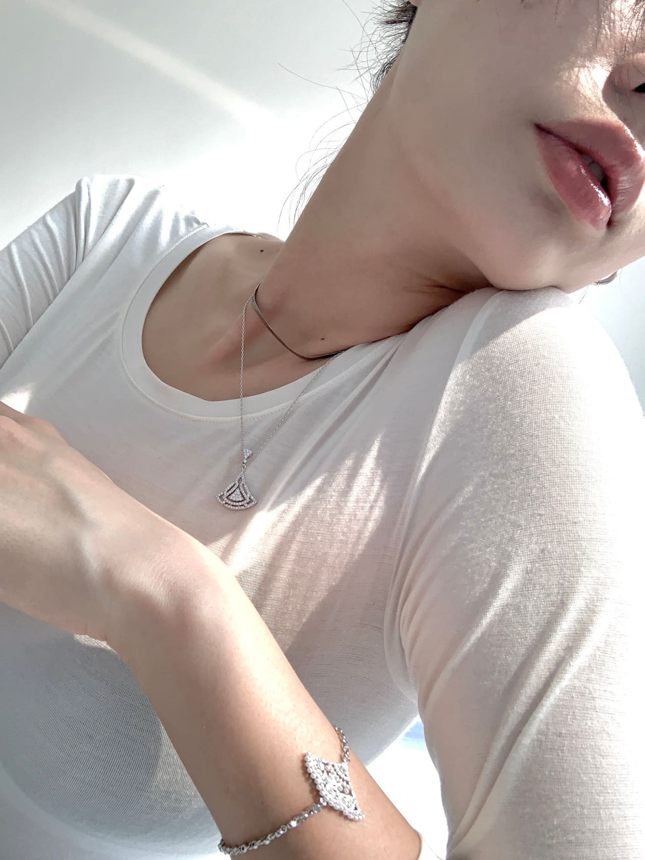 鞠婧祎凝视镜头,FANCI范琦联名系列珠宝于腕间与耳际闪耀灵动光芒
