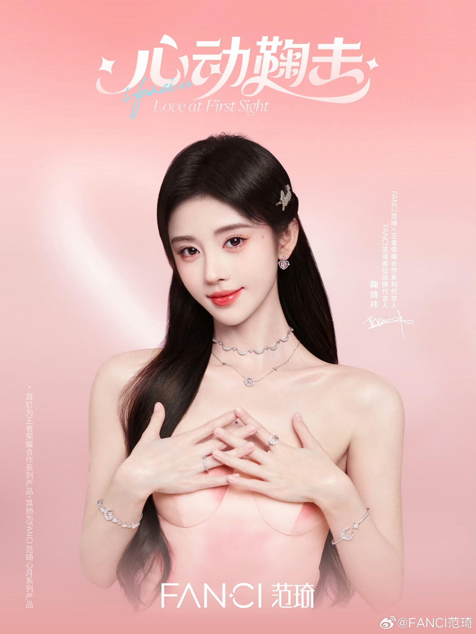 近日,新生代人气艺人鞠婧祎正式官宣成为轻奢珠宝品牌FANCI范琦的首位品牌代言人,并同时担任其与热门游戏《王者荣耀》合作系列的代言人。此次合作不仅标志着鞠婧祎个人时尚影响力的飞跃,也展现了FANCI范琦品牌力图拥抱年轻潮流、融合多元文化的全新姿态。在释出的系列视觉大片中,鞠婧祎以多套极具表现力的造型,完美演绎了珠宝与时尚碰撞出的摩登火花。
